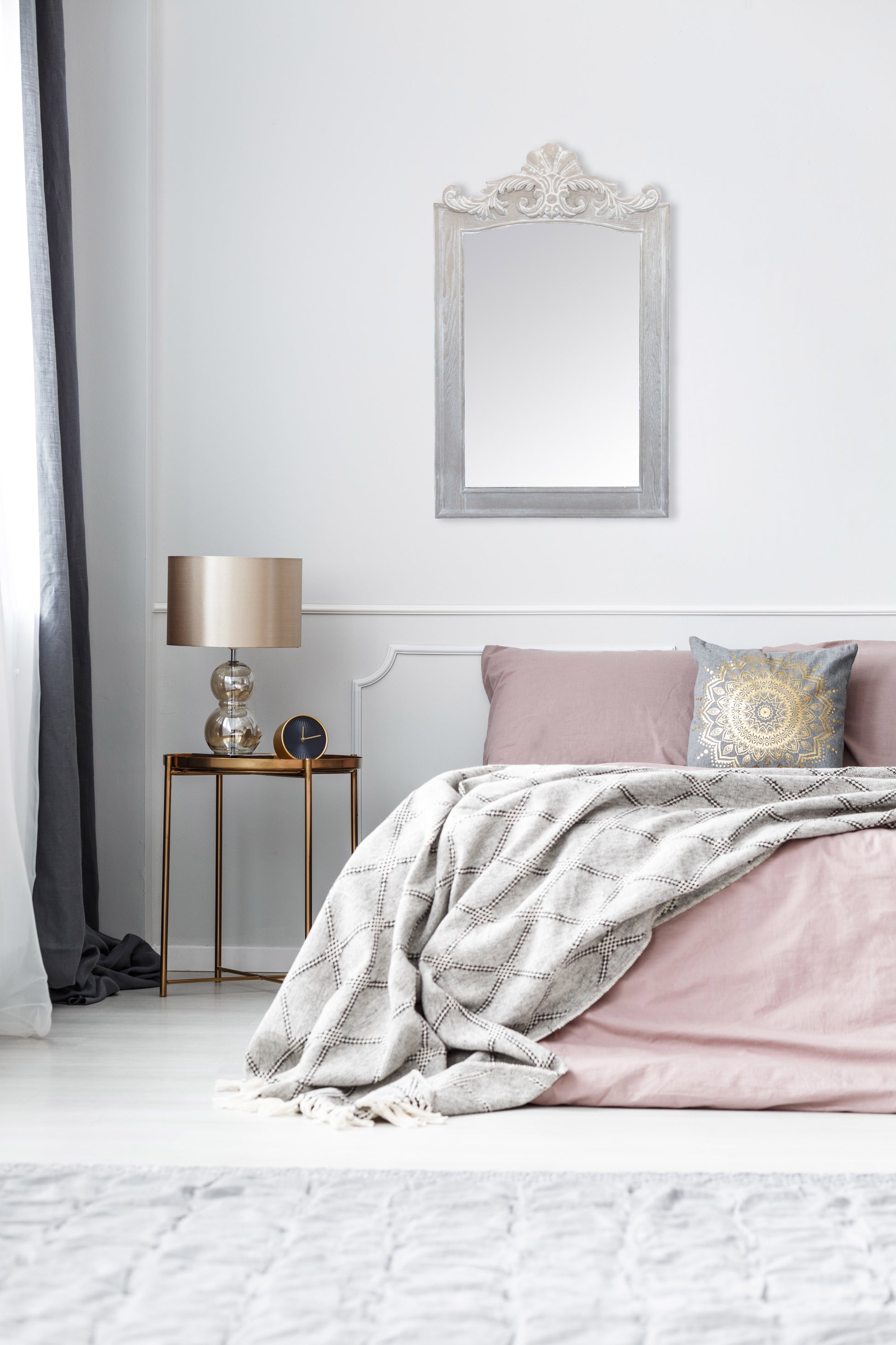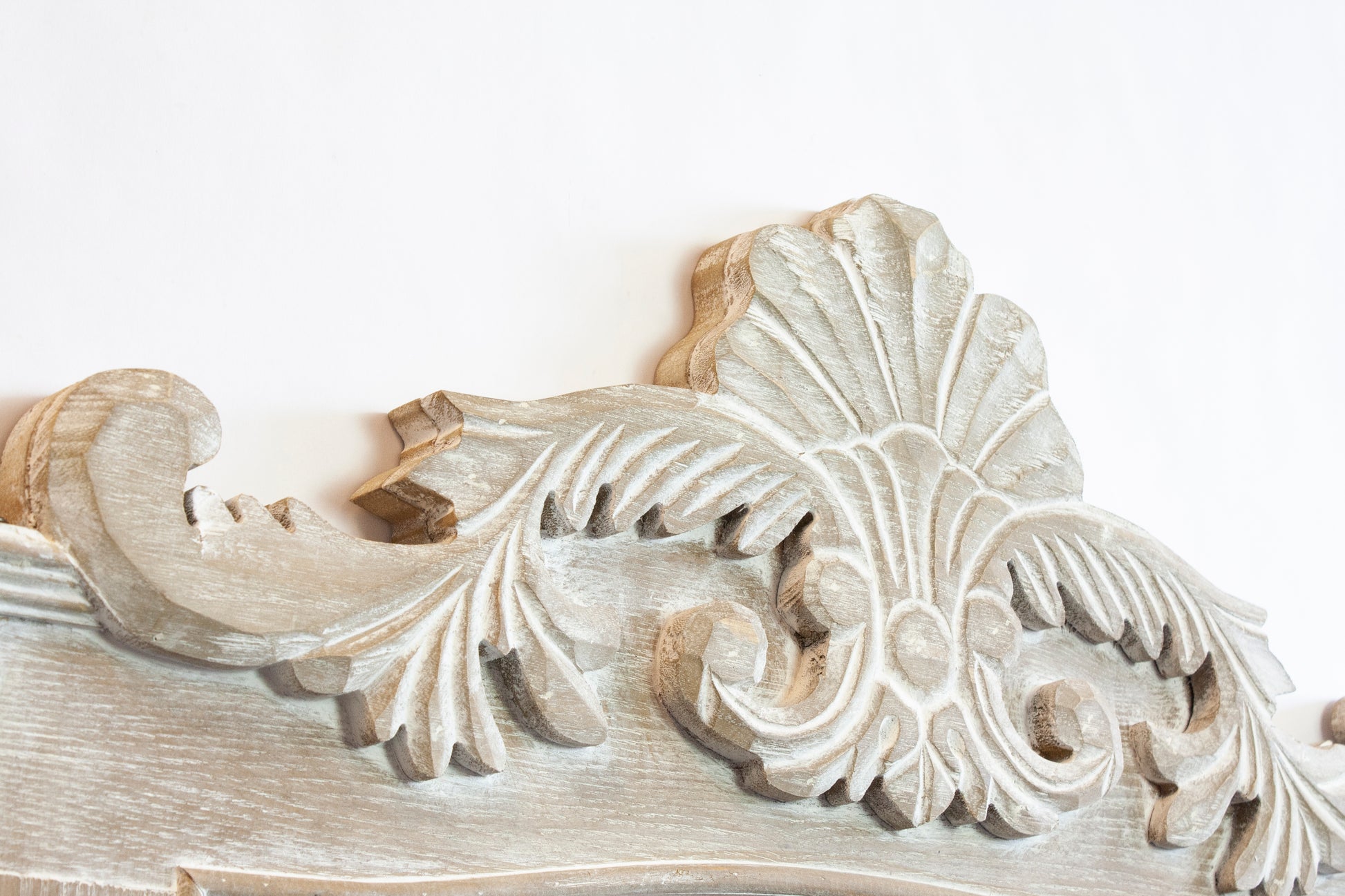 Miroir trumeau en bois rectangulaire effet blanchi avec moulures "Lanwood" - aimuria